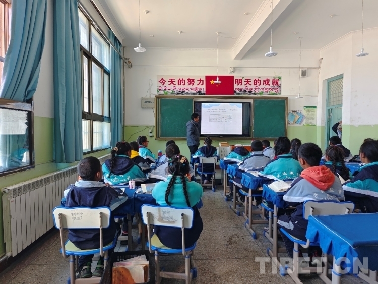 圖為雄麥鄉(xiāng)小學六年級的學生在暖和的教室里上數(shù)學課 攝影:頓珠