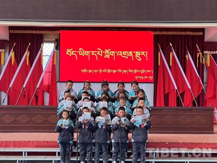 圖為雄麥鄉(xiāng)小學舉辦藏文誦讀比賽