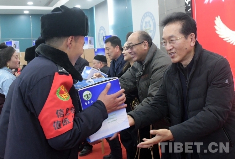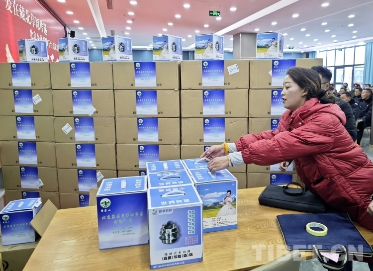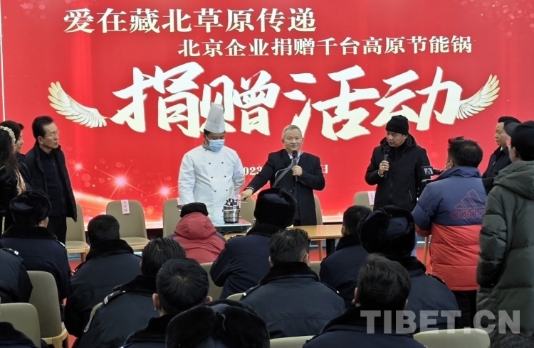 隆冬時節(jié),藏北大地千里雪飄,寒氣襲人,但在那曲市職業(yè)學校實訓樓里卻熱鬧非凡。室內(nèi),大型電子屏顯示著“愛在藏北草原傳遞——北京企業(yè)捐贈千臺高原節(jié)能鍋捐贈活動”的字幕。那曲市近百名農(nóng)牧民群眾和環(huán)衛(wèi)工人、鐵路護路隊員代表相聚這里接受捐贈。