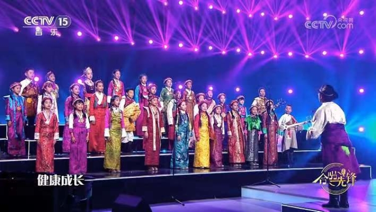 圖為西藏珠峰少年合唱團登上中央廣播電視總臺音樂頻道合唱節(jié)目《合唱先鋒》舞臺