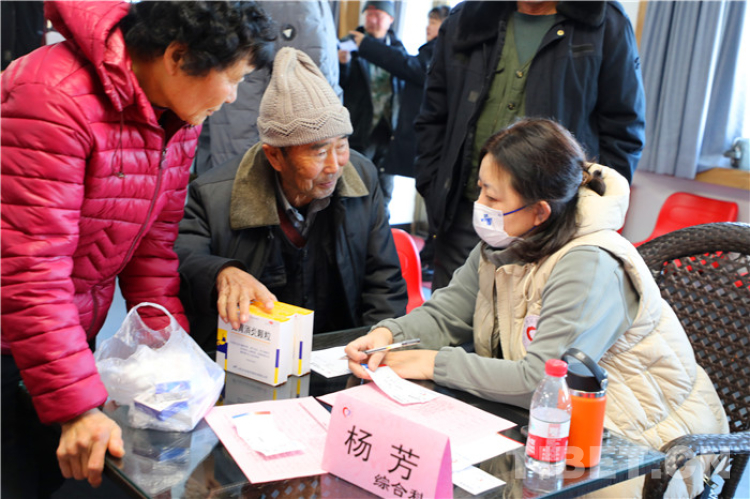 在紅星村黨群活動中心臨時義診室寬敞的大堂里,村民們在工作人員有條不紊的分診下,很快找到醫(yī)生進行問診,并按照醫(yī)囑領到了免費的藥品。