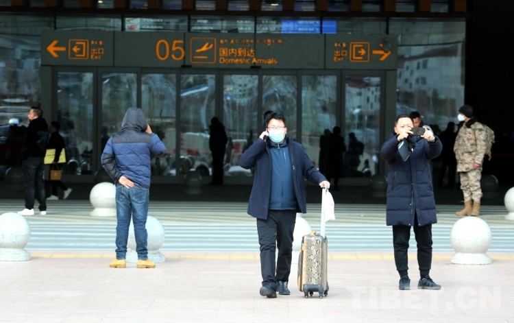 圖為1月26日春運(yùn)首日,剛剛抵達(dá)拉薩貢嘎機(jī)場(chǎng)的旅客 攝影:王佳豪