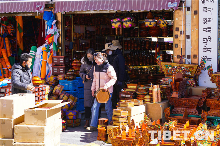 中國(guó)西藏網(wǎng)訊 藏歷新年和新春佳節(jié)即將到來,西藏自治區(qū)拉薩市大街小巷熱鬧非凡。年貨一條街、超市、商店?duì)幭嗤瞥龈魇侥曦洠教帍垷艚Y(jié)彩,處處洋溢著喜慶的氛圍。記者于近日來到八廓商城,通過一組照片帶大家一起感受喜迎藏歷新年的濃濃氛圍。(中國(guó)西藏網(wǎng) 記者/趙振宇 王佳豪)