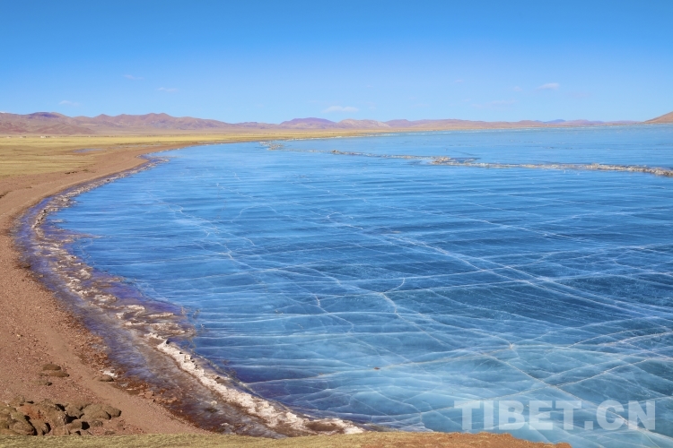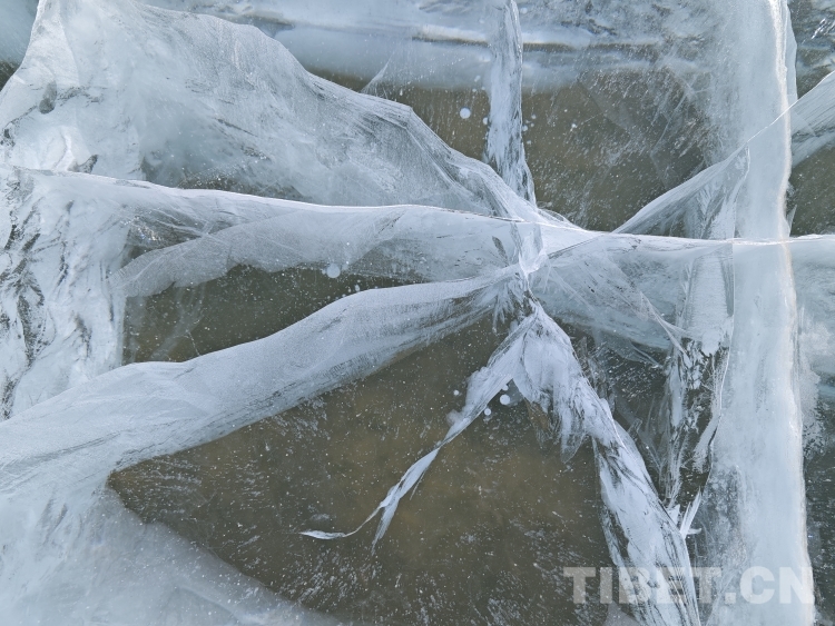 錯那湖湖面海拔4600米左右,面積400多平方公里,是世界上海拔最高的淡水湖,更有冰泡、冰裂、冰推等奇妙的自然景觀。當(dāng)氣溫急劇下降時,水溫也驟降,湖底產(chǎn)生的氣體在上升過程中被凍在冰中,形成許多細(xì)小的白色氣泡,懸浮在厚厚的冰層之中。湖水表面一層被藏北的朔風(fēng)快速凍結(jié)成冰,部分碎冰在岸邊堆積,形成隆起的“冰岸線”。又由于初春晝夜溫差較大,湖冰崩裂,形成網(wǎng)狀的冰裂紋路。這些透明裂紋從岸邊開始,像潮水一樣漫過平地,漫過羌塘草原腹地,漫到天邊,把羌塘大地裝扮成一個冰晶縱橫交錯的世界。(中國西藏網(wǎng) 文/李一凡 張萌萌 龍真多吉)