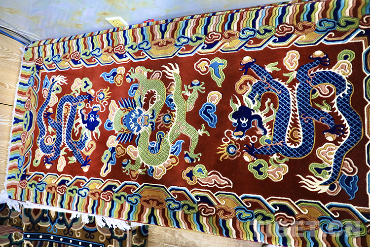 一條條精美的藏毯既體現(xiàn)了藏民族的審美情趣,也表達了中華兒女對龍的熱愛。(中國西藏網(wǎng) 記者/龍真多吉 張萌萌 李一凡)