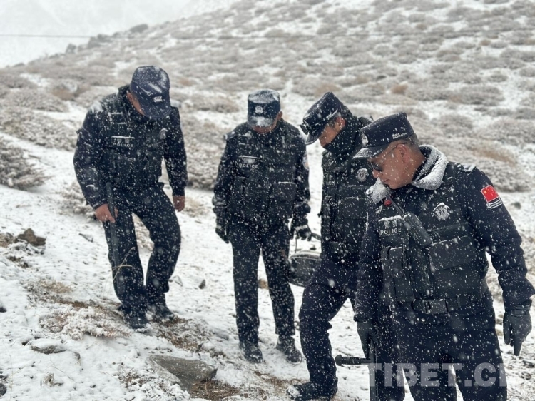 圖為斜爾瓦執(zhí)勤點(diǎn)民警冒著風(fēng)雪開展巡邏踏查 攝影:格熱