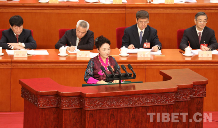 圖為全國政協(xié)委員卓嘎在作大會發(fā)言 攝影:桑吉