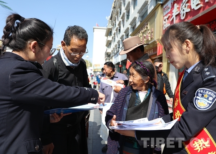 圖為西藏邊檢總站執(zhí)法調(diào)查支隊民警在街頭宣講