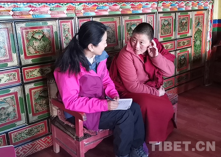 圖為邊巴拉姆在寺廟調(diào)研 受訪者供圖