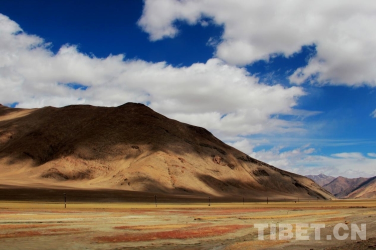 圖為強日照、大風(fēng)中的西藏自治區(qū)阿里地區(qū)日土縣一處山體與草場 攝影:劉莉