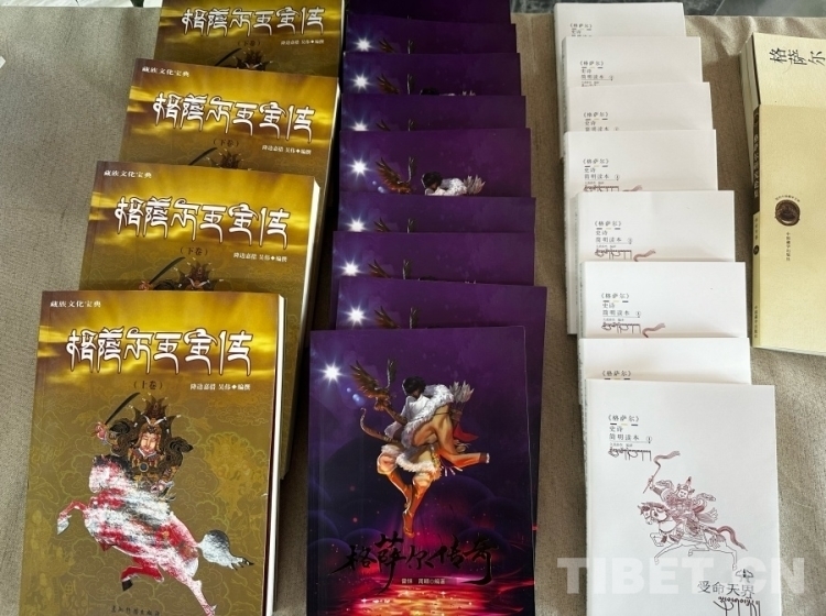 圖為展覽區(qū)內(nèi)格薩爾王相關(guān)書(shū)籍 攝影:旦曲