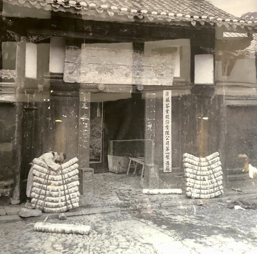1939年,中國電影教育的開創(chuàng)者之一、時任金陵大學(xué)教師的孫明經(jīng)對西康進(jìn)行了系統(tǒng)的考察,也為姜家大院留下了珍貴的影像資料。他拍攝到當(dāng)時姜家大院大門口的情景:“裕興茶店”的匾額下,掛著“康藏茶葉股份有限公司第一制造廠”的木牌,大門兩邊各放著一背茶包,均為九條,左邊有一位女背夫,正在打捆茶包,整個茶包預(yù)估有200斤,而在當(dāng)時,男背夫所要背負(fù)的重量要達(dá)到300斤左右。