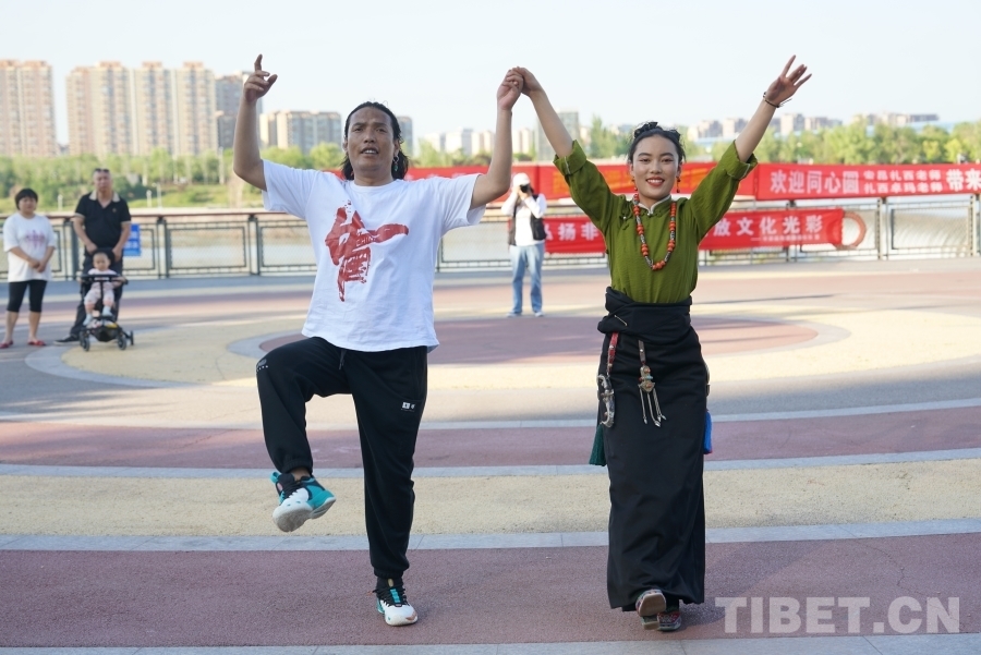 圖為來自西藏拉薩的藏舞推廣人沙多正在領(lǐng)舞 攝影:陳浩力