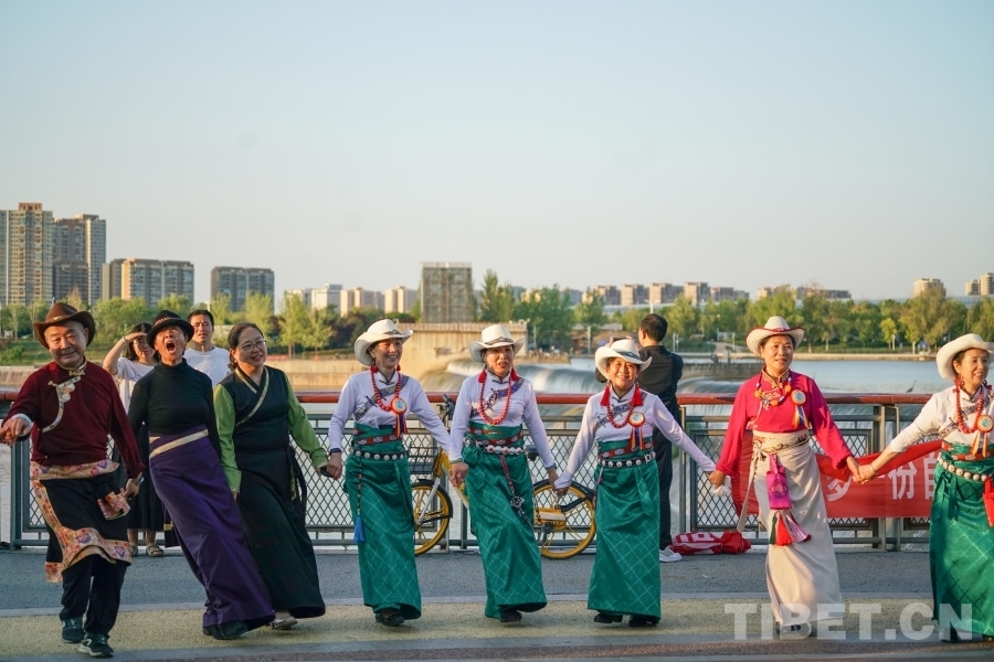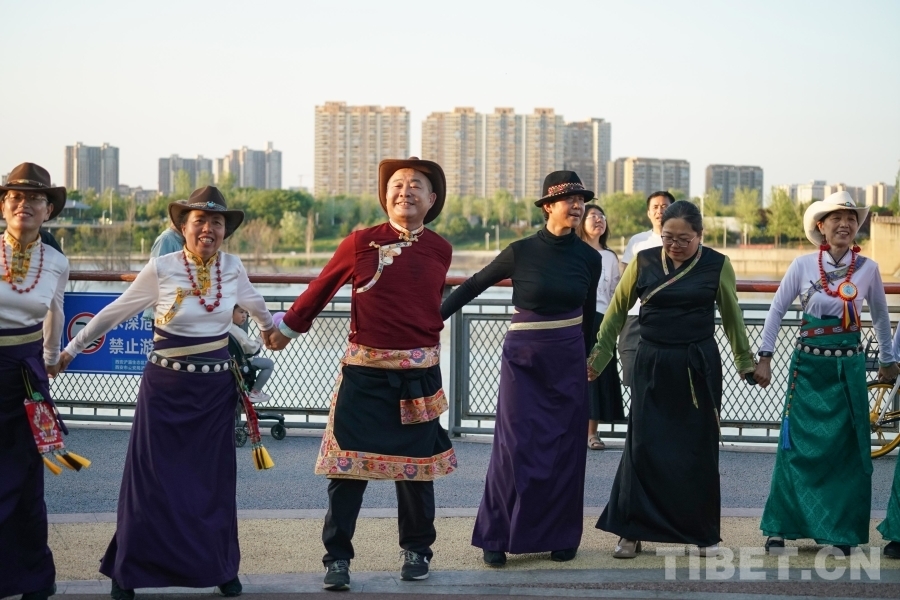 中國西藏網(wǎng)訊 近日,由同心圓傳統(tǒng)藏舞會(huì)堂舉辦的傳統(tǒng)藏舞推廣展演活動(dòng)在西安浐灞半島舉辦,來自西藏、青海、四川等地的多位藏舞推廣傳承人、民間音樂創(chuàng)作人與藏舞愛好者齊聚西安,他們身著藏族傳統(tǒng)服飾,邊唱邊跳,《歡迎你們到來》《吉祥的哈達(dá)》《放牧歌》……一曲接著一曲,大家在歌聲和歡呼聲中感受著藏族文化的無限魅力?。ㄖ袊鞑鼐W(wǎng) 記者/呂靜 陳浩力)