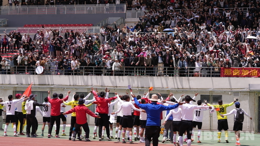 圖為那曲代表隊和球迷們共同慶祝 攝影:旦曲