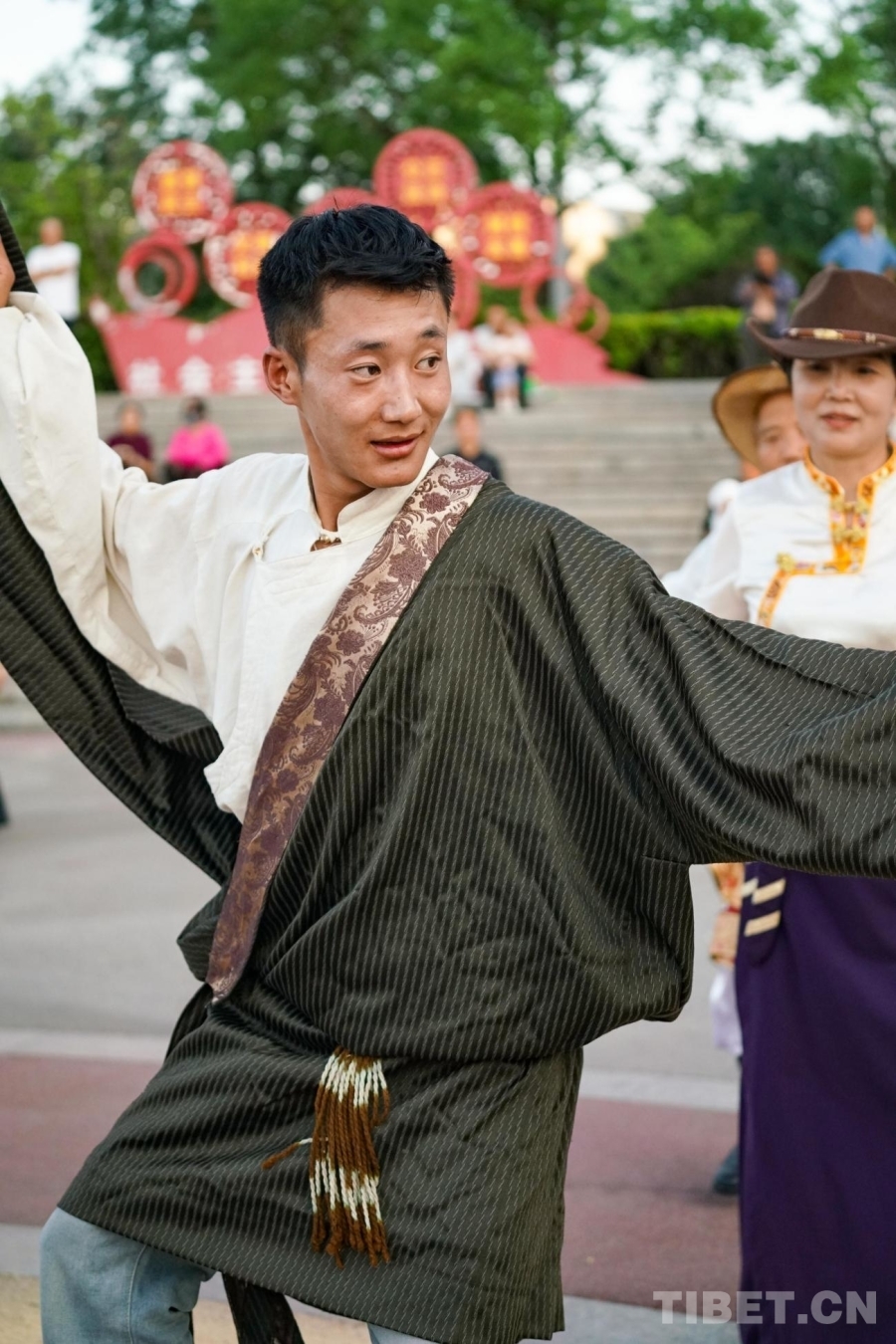 小志在接受完采訪,立刻投入到展演活動當中,幾支舞蹈結(jié)束,因為穿著的藏裝比較厚實,汗水已經(jīng)浸濕了衣裳,但他臉上仍然保持著自信的神情,他想向現(xiàn)場的觀眾呈現(xiàn)最完美的舞姿。一次又一次的推廣與教學(xué)活動讓小志更加明白了自己身上肩負的責(zé)任與使命。
