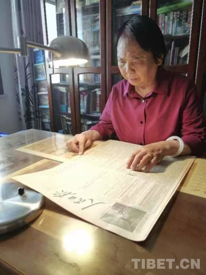 圖為慕曉峰在翻閱當(dāng)年人民日?qǐng)?bào)關(guān)于青藏公路的報(bào)道 受訪者供圖