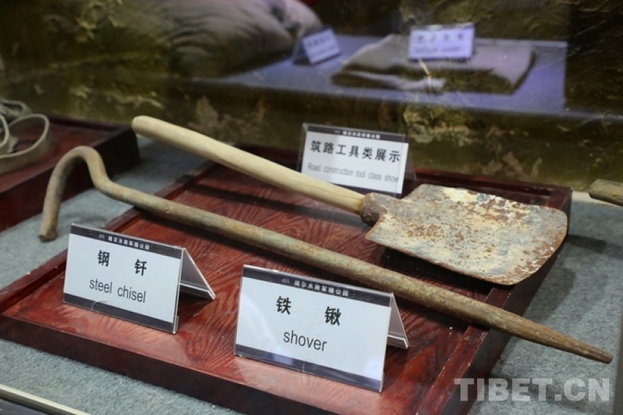 圖為青藏公路紀(jì)念館展出的鐵鍬等筑路工具 攝影:王茜