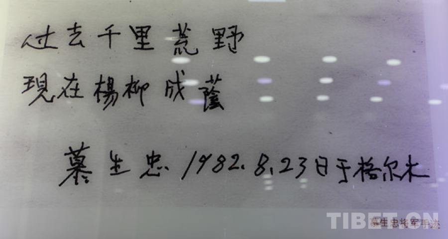 圖為青藏公路紀(jì)念館展出的慕生忠手跡(圖) 翻拍:王茜