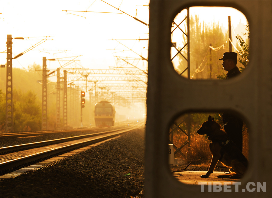 圖為民警跟隨列車,用腳步丈量“天路”