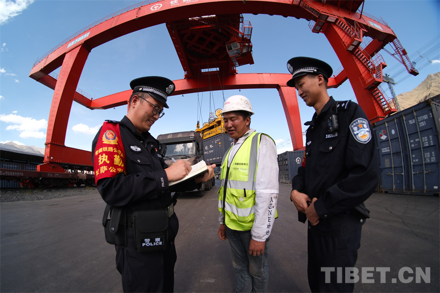 拉薩西站貨場是西藏自治區(qū)最大的鐵路物流集散中心,圖為該站派出所民警定期開展安全知識及法治宣傳