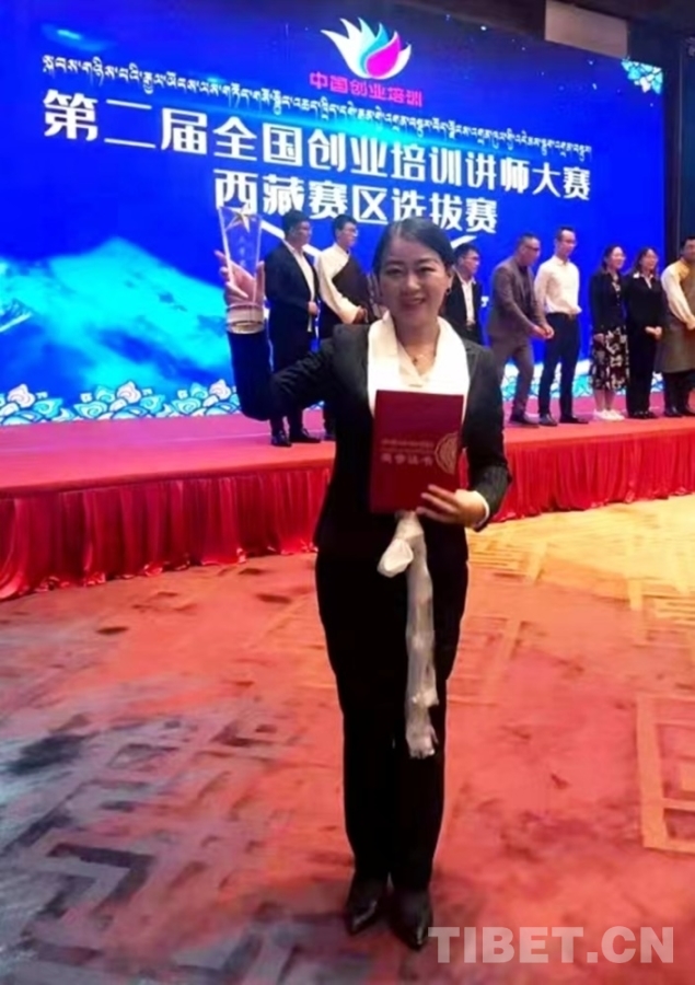 圖為付燕在第二屆全國創(chuàng)業(yè)培訓(xùn)講師大賽西藏賽區(qū)選拔賽中獲獎