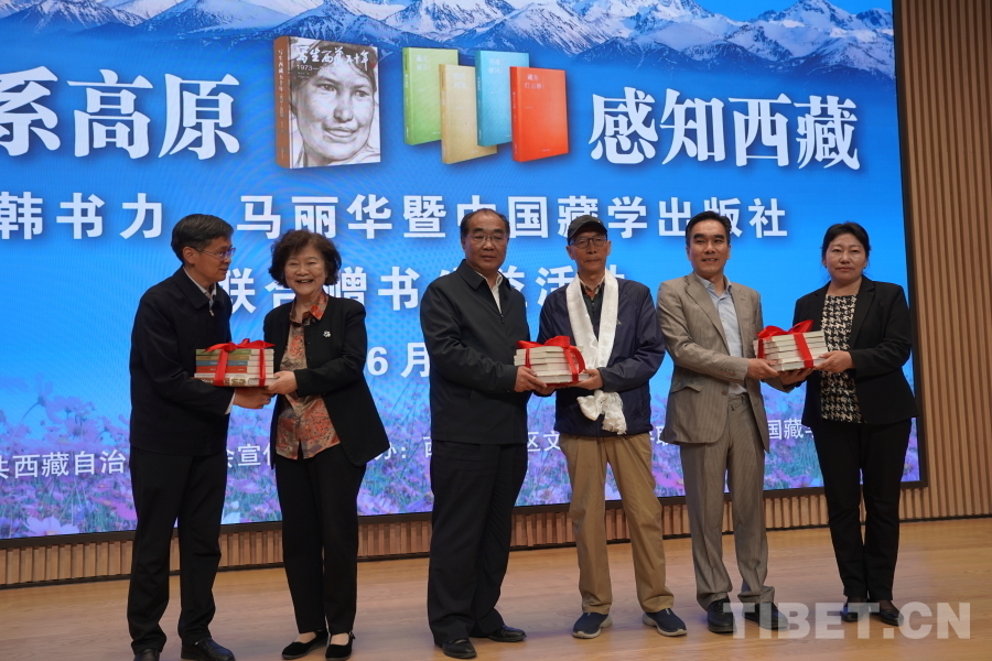 活動(dòng)現(xiàn)場(chǎng),韓書力、馬麗華與中國(guó)藏學(xué)出版社向西藏多所學(xué)校、文化單位捐贈(zèng)美術(shù)、文學(xué)作品集以及中國(guó)藏學(xué)出版社系列圖書共計(jì)25000余冊(cè),價(jià)值近200萬(wàn)元。