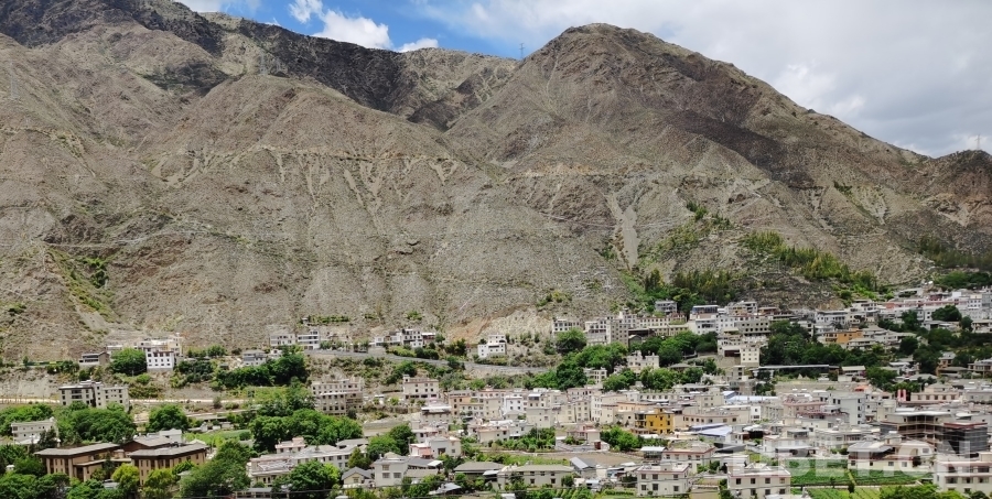 蜿蜒的山路,陡峭的崖壁,車子在兩山之間沿著金沙江疾馳。山上一片荒蕪,沒有一點(diǎn)綠色,熱浪滾滾而來,我們終于來到了得榮,這個(gè)因陽光充足而有“太陽谷”美譽(yù)的地方。得榮縣位于四川省甘孜藏族自治州西南部,有“長征國家文化公園甘孜段南大門”之稱。
