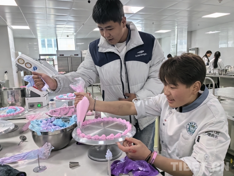 圖為西藏技師學院的學生正在面點課上練習裱花 攝影:王淑