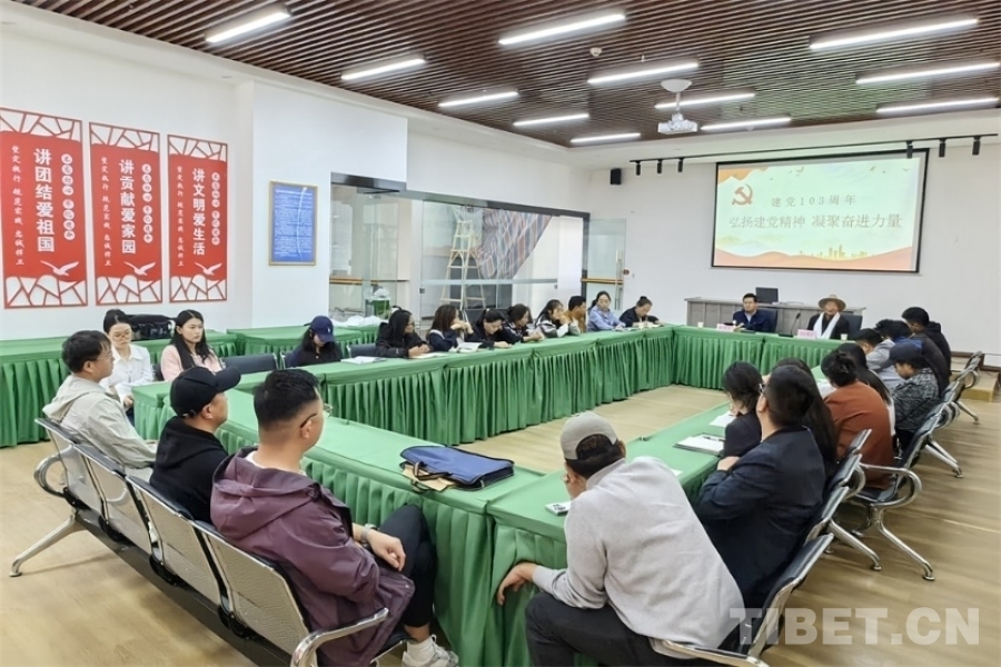 在洛隆縣色底村的卓林夏季牧場(chǎng),240多名色底村黨支部和駐村工作隊(duì)全體黨員黨員面向鮮艷的黨旗,重溫入黨誓詞,齊聲高唱《北京的金山上》,喜迎建黨103周年。