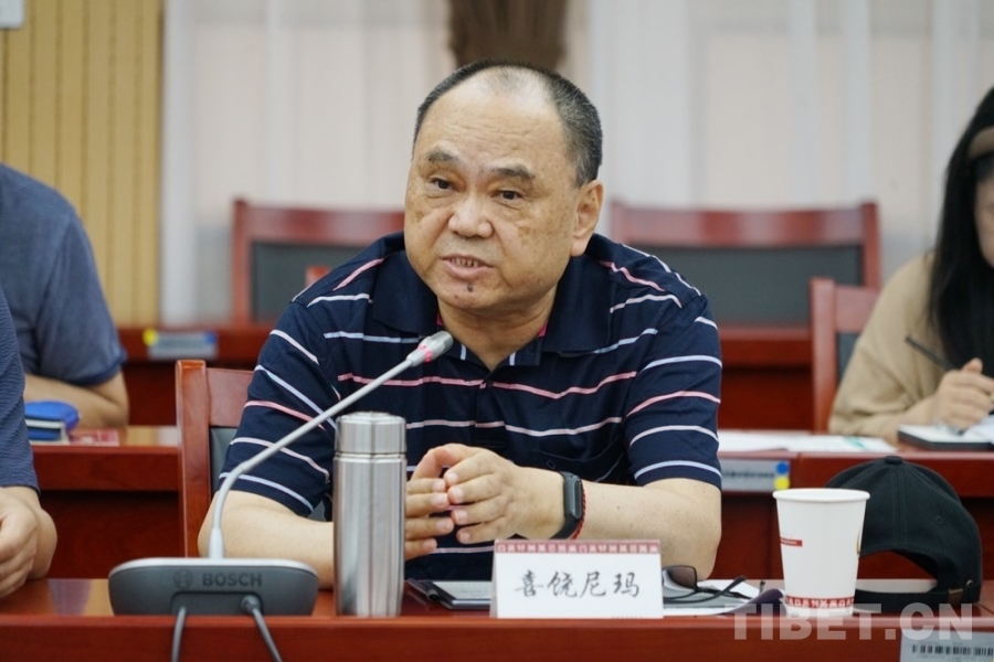 圖為喜饒尼瑪在紀(jì)念江孜抗英斗爭(zhēng)120周年學(xué)術(shù)研討會(huì)上發(fā)言 攝影:王茜