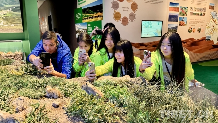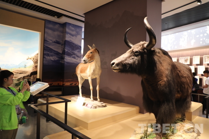 圖為香港青少年參觀高原特有物種藏野驢和野牦牛的標本。攝影:桑吉
