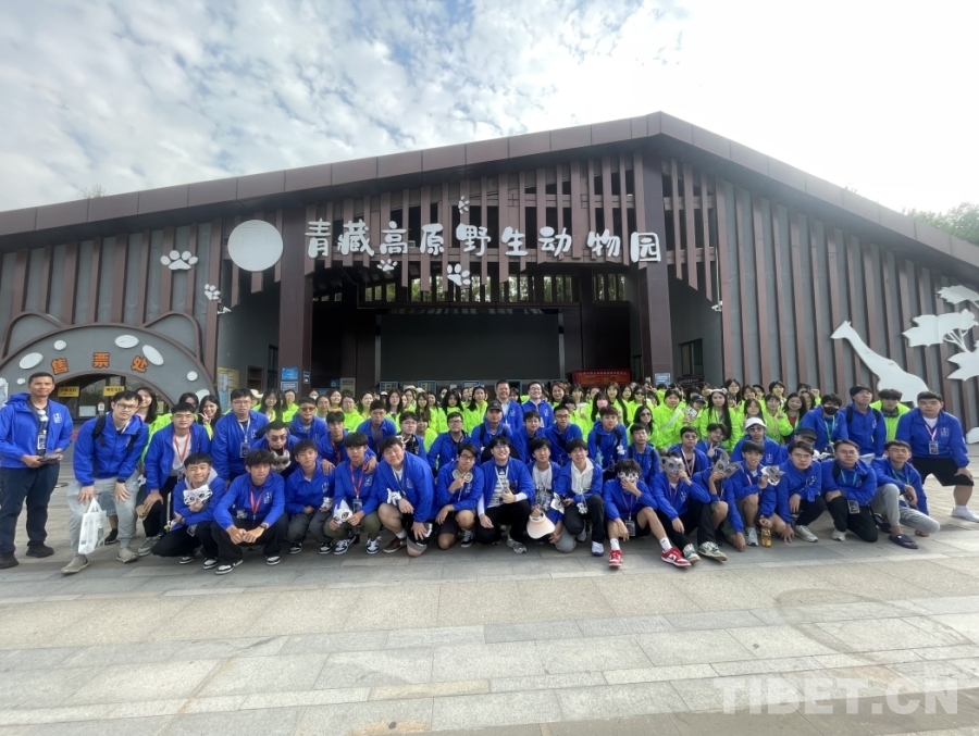 圖為香港青少年在西寧野生動物園門口合影。攝影:桑吉