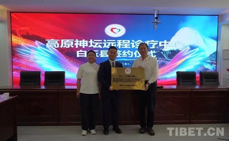 中國西藏網(wǎng)訊 7月8日下午,“同心·共鑄中國心”高原神壇遠(yuǎn)程診療中心白玉縣座談會(huì)在甘孜州白玉縣人民醫(yī)院舉行。白玉縣委常委、統(tǒng)戰(zhàn)部長約來,縣衛(wèi)生健康局、縣人民醫(yī)院相關(guān)負(fù)責(zé)人,“高原神壇專項(xiàng)基金”專家組成員清華長庚醫(yī)院神經(jīng)中心主任王貴懷、北京天壇醫(yī)院神經(jīng)外科原主任魏希發(fā)、北京豐臺(tái)醫(yī)院副院長神經(jīng)外科主任馬延山、國家電網(wǎng)北京電力醫(yī)院神經(jīng)外科主任宗淼、首都醫(yī)科大學(xué)北京首鋼醫(yī)院神經(jīng)外科主任高峰等出席會(huì)議。座談會(huì)期間,與會(huì)人員就“高原神壇遠(yuǎn)程診療中心”項(xiàng)目進(jìn)行了深入討論,簽訂了高原神壇遠(yuǎn)程診療中心幫扶協(xié)議,并為“同心·共鑄中國心”高原神壇遠(yuǎn)程診療中心授牌。