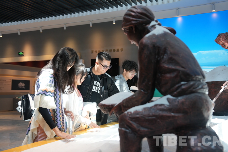 “茶卡”是藏語,意即鹽池。鹽是我們生活中最為常見之物,但直到來到茶卡鹽湖文化館,這些青少年們才發(fā)現(xiàn)自己所知有限。他們這才了解到,鹽這一日常餐桌上的尋常之物,其背后竟藏著一個多彩而豐富的世界。除我們熟悉的海鹽、湖鹽之外,巖鹽的堅硬、井鹽的深邃、竹鹽的清新,都以各異的姿態(tài)和色彩展現(xiàn)著自然界的奇妙多樣性。鹽的妙用也遠(yuǎn)不止調(diào)味,還有清潔、消腫等多種功效。何莉莉聯(lián)想到自己生物課上所學(xué):“鹽里含有的多種氨基酸和微量元素,都是我們身體所需,對人類真的很重要。”