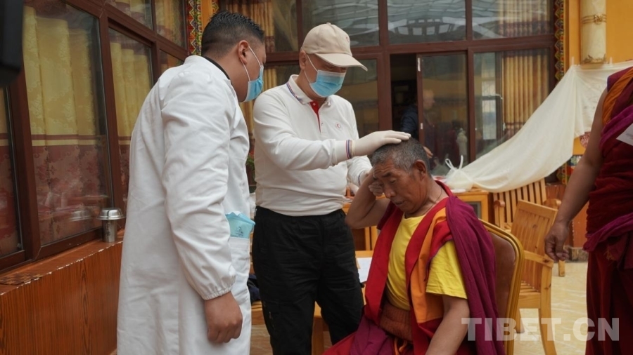 中國西藏網(wǎng)訊 7月10日,“同心·共鑄中國心”公益醫(yī)療團隊走進四川省甘孜藏族自治州理塘縣長青春科爾寺(又名理塘寺),為寺內(nèi)僧人義診?,F(xiàn)場義診的專家們平均年齡都在四十歲以上,他們都是一邊與高原反應抗衡一邊堅持義診,秉承著“缺氧不能缺精神”的態(tài)度堅持工作。