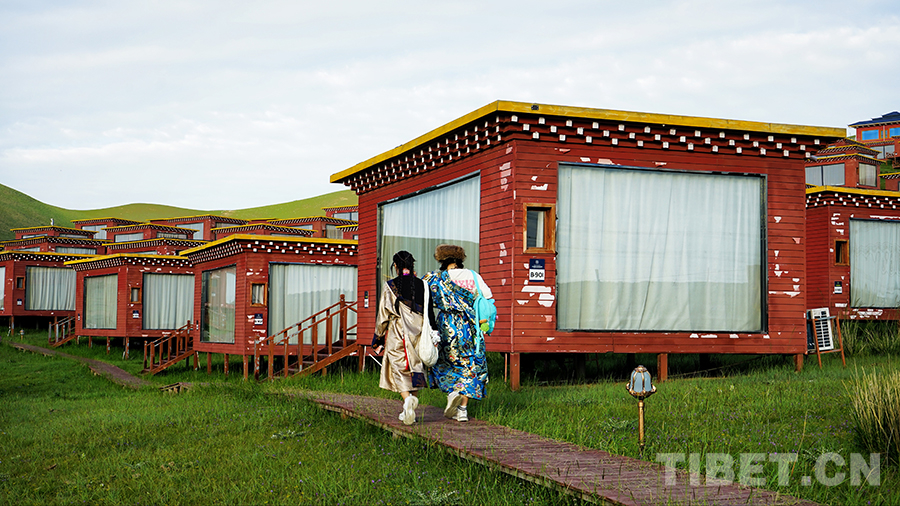 圖為兩名身著藏裝的香港學(xué)生準(zhǔn)備回到文迦牧場(chǎng)的小木屋中。攝影:李泓慶
