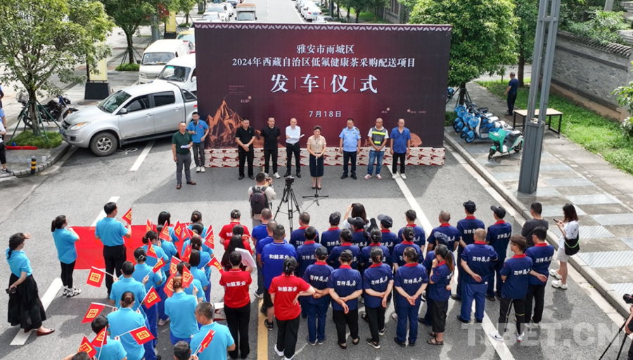 圖為2024年西藏自治區(qū)低氟健康茶采購配送項目發(fā)車儀式現(xiàn)場