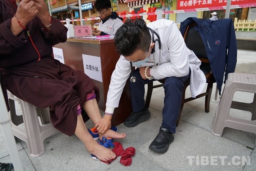 7月6日傍晚,歷經(jīng)一整天的奔波后,胡暢所在的“同心·共鑄中國心”甘孜行白玉縣醫(yī)療專家團(tuán)抵達(dá)白玉縣城。在接下來七天的幫扶活動(dòng)中,胡暢先后在白玉縣新時(shí)代文明實(shí)踐廣場、縣人民醫(yī)院、昌臺(tái)片區(qū)阿察鎮(zhèn)、河坡鄉(xiāng)中心小學(xué)等地義診,并在縣人民醫(yī)院為到場的當(dāng)?shù)蒯t(yī)護(hù)人員和消防隊(duì)員開展了一場以血管外科為主題的健康科普講座。活動(dòng)期間,一聲聲道謝,一條條哈達(dá),一張張笑臉,道不盡的是患者們的感激,凝結(jié)的是胡暢與甘孜白玉再也割舍不斷的情感聯(lián)結(jié)?!霸诮诸^和群眾相遇,他們知道我們是北京過來的義診醫(yī)生,很歡迎我們,會(huì)微笑著和我們打招呼,讓人覺得很溫暖。”