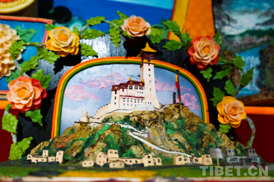 酥油花的產(chǎn)生,一說始于青藏高原的原始宗教苯教,為了減少在祭祀活動(dòng)中對動(dòng)物的殺戮,教徒們用糌粑捏成各種祭祀動(dòng)物形狀,并用酥油在供品上點(diǎn)綴以小小貼花,被稱之為“朵瑪”;一說源于公元641年唐朝同吐蕃聯(lián)姻時(shí),文成公主攜釋迦牟尼12歲等身像入藏,將其供奉于大昭寺,按照儀軌,供奉佛和菩薩的貢品有六色,即花、涂香、圣水、瓦香、果品和佛燈,可當(dāng)時(shí)天寒草枯沒有鮮花,只能用酥油塑花獻(xiàn)佛;一說起于宗喀巴大師的夢境,夢見荊棘變?yōu)槊鳠?,雜草化為鮮花,無數(shù)奇珍異寶,五光十色,燦爛奪目,醒后即刻組織藝僧用酥油制作重現(xiàn)夢中勝境。無論哪種說法,酥油花從宗教貢品到傳統(tǒng)技藝的演變,都是藏族人民向善向上的具象化呈現(xiàn)。