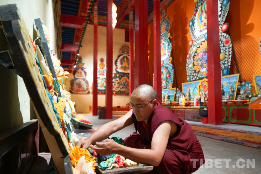 鮮花易逝但酥油花長久,瓊科寺僧人通過指尖上的酥油花作品,弘揚(yáng)了藏傳佛教愛國愛教的優(yōu)良傳統(tǒng),讓西藏優(yōu)秀傳統(tǒng)文化在新時(shí)代煥發(fā)新光彩。(中國西藏網(wǎng) 記者/王淑 趙振宇)