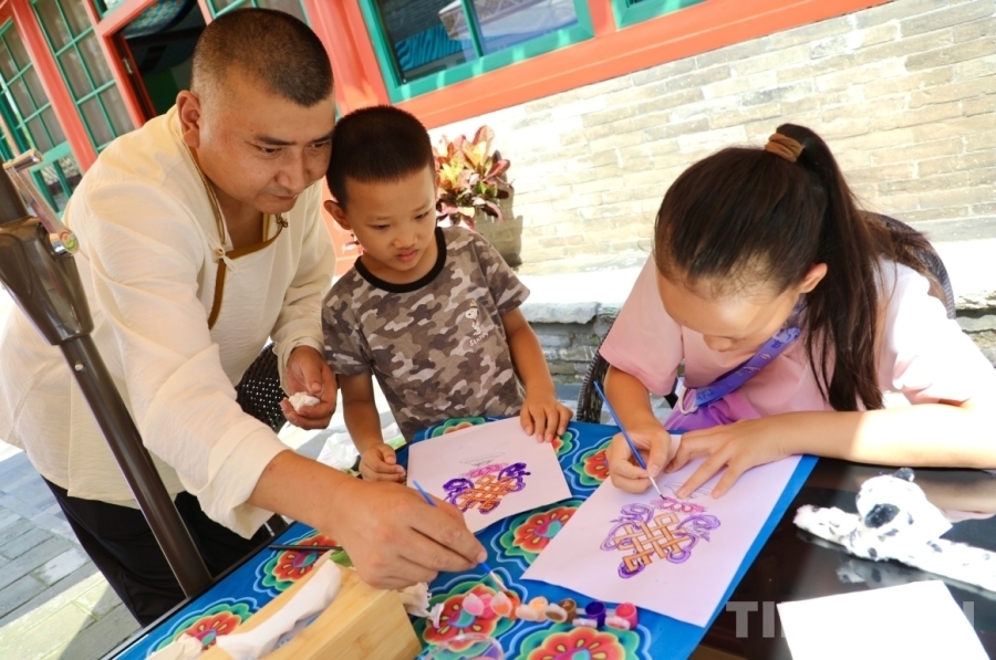 8月9日,中華民族優(yōu)秀文化體驗(yàn)項(xiàng)目輪展活動(dòng),在北京中華民族共同體體驗(yàn)館(原蒙藏學(xué)校舊址)舉行。國家級(jí)非物質(zhì)文化遺產(chǎn)代表性項(xiàng)目熱貢藝術(shù)省級(jí)代表性傳承人、唐卡畫師扎西尖措?yún)⒓恿舜舜握寡莼顒?dòng),將一場(chǎng)精彩的唐卡藝術(shù)體驗(yàn)課帶到了首都。