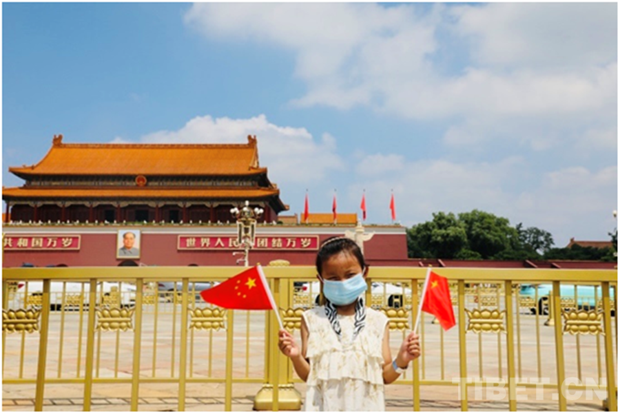 圖為天安門前的澤丹 攝影:龍真多吉