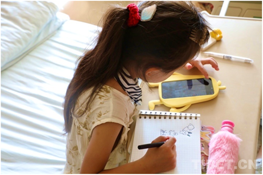記者了解到,澤多家里共有4個孩子,小澤丹在四個兄弟姐妹中排行老三,也是家中最好學(xué)的孩子。在醫(yī)院病房里,小澤丹拿著一本自己專屬的筆記本,反復(fù)在上面寫著自己的漢文和藏文名“澤丹(????????)”。有時她也會照著手機里的圖片,一筆一劃有模有樣地勾勒出各種圖案。