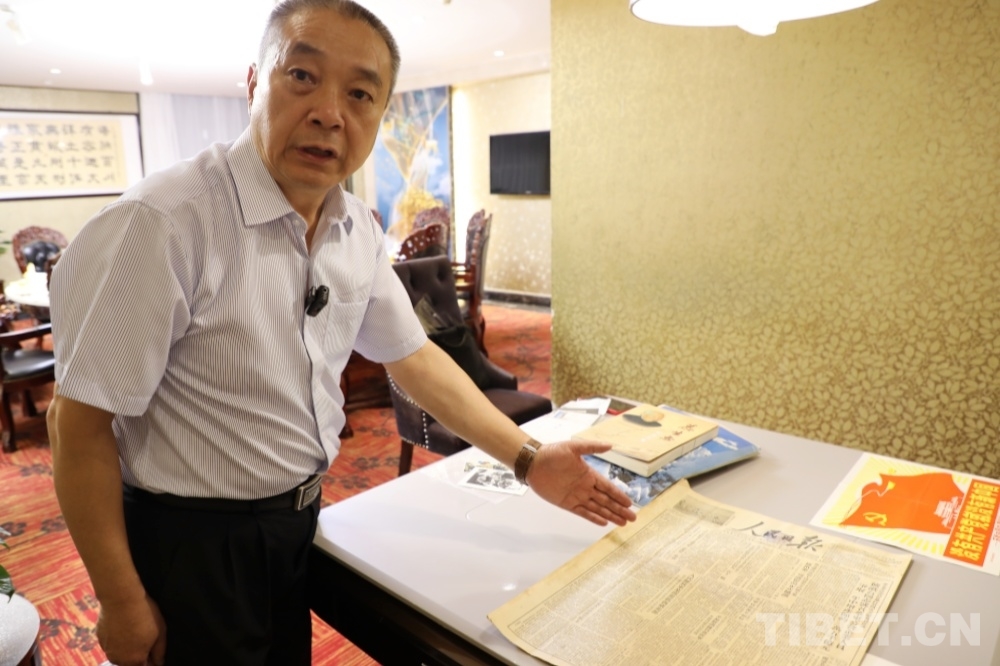 慕曉峰和家人有很多珍藏,如刊載《青藏公路第一批車(chē)輛到達(dá)拉薩》《慶??挡亍⑶嗖貎晒穭倮ㄜ?chē)》文章的《人民日?qǐng)?bào)》,以及青藏公路通車(chē)的紀(jì)念郵票、撰寫(xiě)慕生忠修筑青藏公路歷史的文學(xué)周刊等。