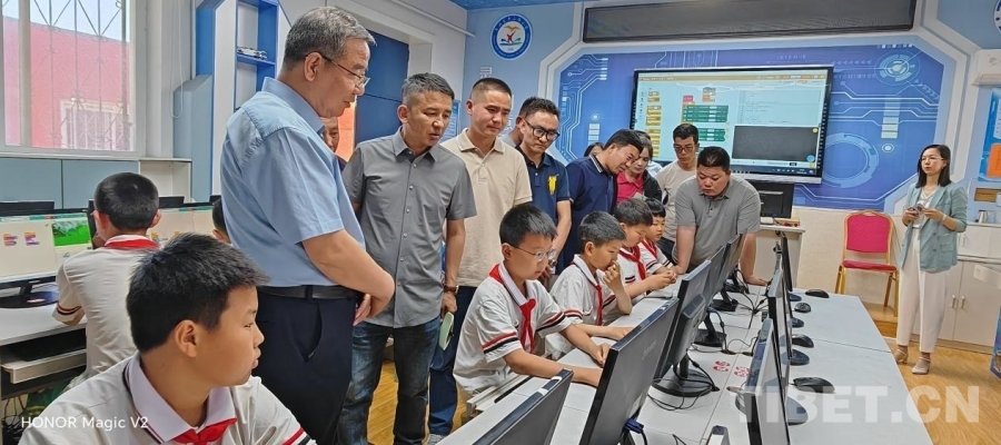 圖為日土縣相關(guān)人員在唐山市燕山路小學(xué)考察
