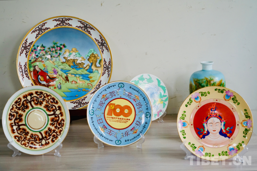 圖為繪有吉祥八寶的牦牛骨瓷餐具 攝影:隋藝斐