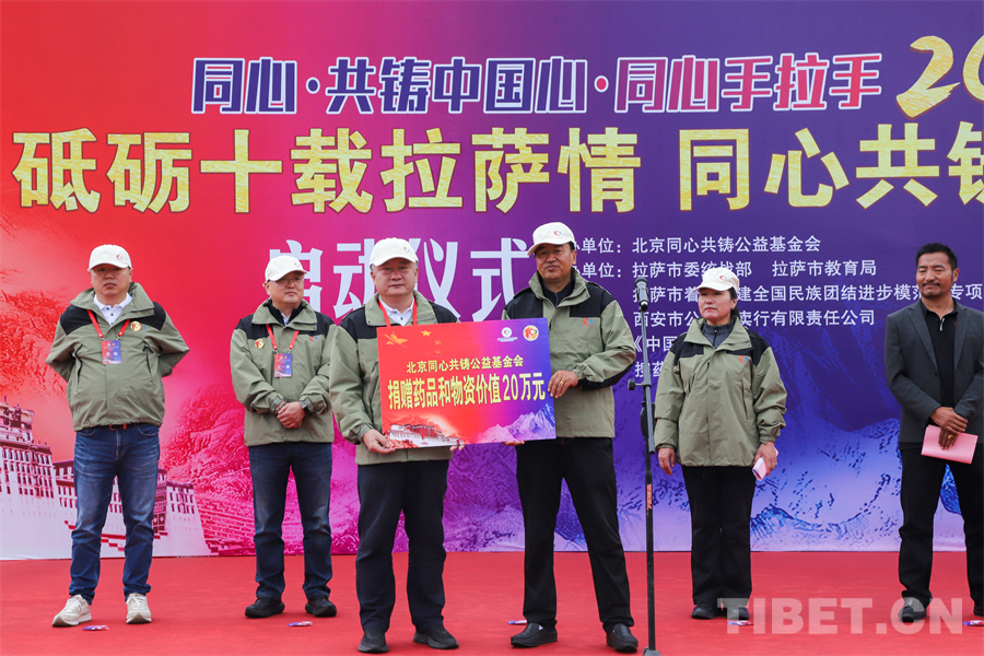 “同心?共鑄中國心”是由步長制藥發(fā)起,中央統(tǒng)戰(zhàn)部、國務院僑辦和國家衛(wèi)生健康委員會指導,中國西藏文化保護與發(fā)展協(xié)會和北京市紅十字基金會聯(lián)合主辦的大型公益活動。為響應黨中央提出的“健康中國 精準扶貧”的戰(zhàn)略部署,在中央統(tǒng)戰(zhàn)部的支持下,在同心共鑄公益基金會的指導下,自2014年啟動“同心·共鑄中國心·同心手拉手”活動,以全國醫(yī)藥零售行業(yè)、流通商業(yè)志愿者為主,以困難家庭學生為主要資助對象,開展定點、定向的愛心志愿服務。(中國西藏網(wǎng) 記者/賈華加 德吉卓瑪)