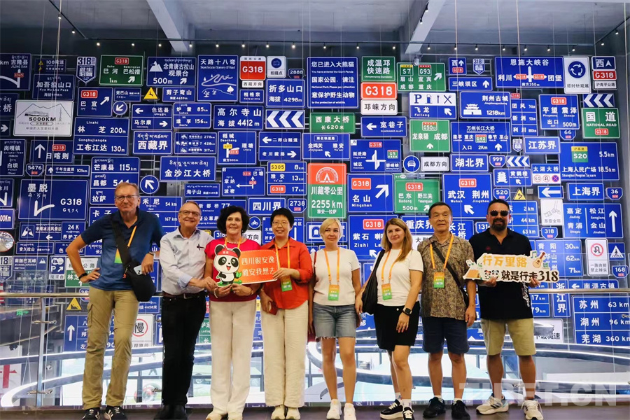 圖為國際旅行商代表團在318微型博物館內參觀打卡