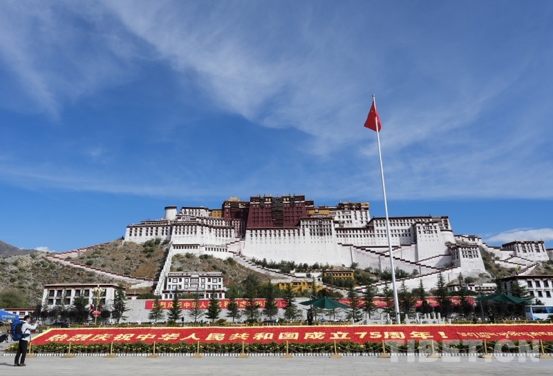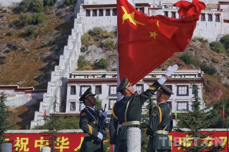 中國(guó)西藏網(wǎng)訊 10月1日上午10時(shí),西藏自治區(qū)慶祝中華人民共和國(guó)成立75周年“升國(guó)旗、唱國(guó)歌”儀式在布達(dá)拉宮廣場(chǎng)舉行。